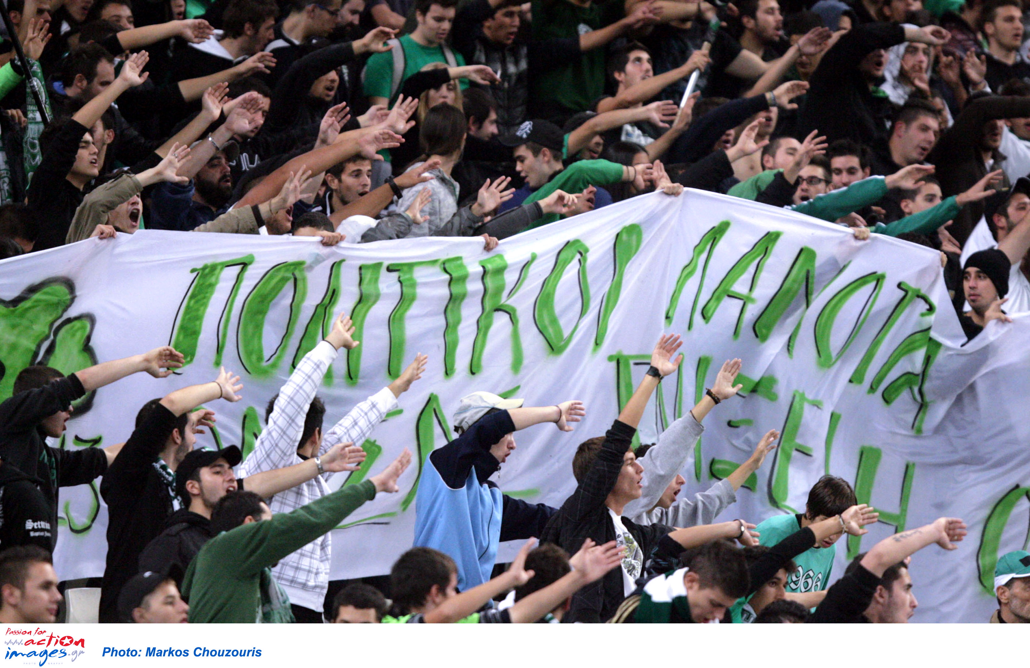 Οι «Αγανακτισµένοι» όµως φαίνεται ότι πάνε γήπεδο. Η αρχή είχε γίνει από τα τέλη Σεπτεµβρίου στην Τούµπα, παραδοσιακό τόπο εµφάνισης πολιτικών συνθηµάτων από τα µέσα της δεκαετίας του 1970, όταν είχε ακουστεί το περίφηµο σύνθηµα «Τούµπα – Καµπότζη – Βιετνάµ» την εποχή της ήττας των Αµερικανών στην Ινδοκίνα. Στον αγώνα ΠΑΟΚ – ΑΕΚ, στις 25 Σεπτεµβρίου, είχαν αναρτηθεί πανό µε συνθήµατα «Ναι στις µειώσεις των µπάτσων» και άλλα.