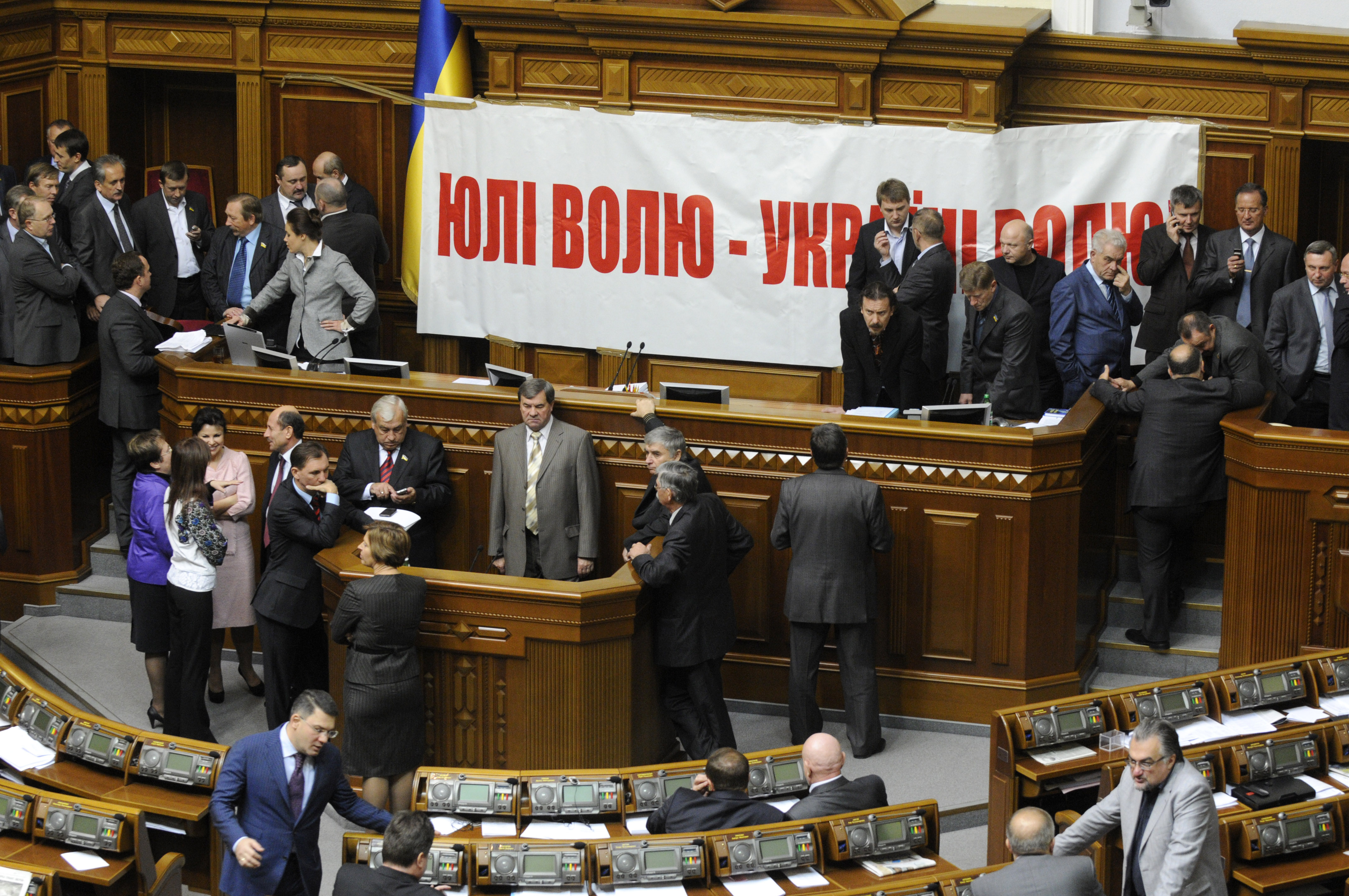 Διαμαρτυρίες ξέσπασαν την Τρίτη στο Κοινοβούλιο της Ουκρανίας, όταν διαδηλωτές και μέλη του κόμματος BYT-Batkivschyna διέκοψαν συνεδρίαση που βρισκόταν σε εξέλιξη.
