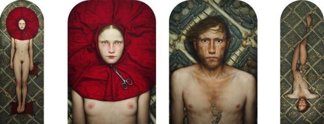 Παραδόξως, πρόκειται για ζωγραφική κατασκευασμένη εξ ολοκλήρου στο στούντιο, είναι τελείως εννοιολογική και σε καμία περίπτωση δεν εμπνέεται από την πραγματικότητα, δεν πρόκειται για το αποτέλεσμα της άμεσης παρατήρησής της. Ο καλλιτέχνης ενδιαφέρεται να απεικονίσει την εσωτερική ψυχική κατάσταση των προσώπων του, αλλά για να το κατορθώσει δεν διστάζει να κάνει χρήση μιας εξαντλητικά ανατομικής αναπαράστασης του ανθρώπινου σώματος ανατρέχοντας στην παράδοση της φλαμανδικής ζωγραφικής. Η έκθεση θα διαρκέσει ως τις 26 Φεβρουαρίου του 2012.