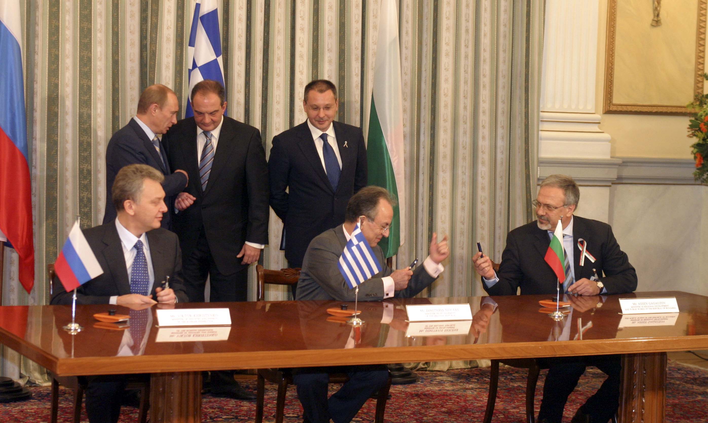 Όπως είπε ο αντιπρόεδρος της κυβέρνησης και υπουργός Οικονομικών Συμεών Ντιάνκοφ, η Σόφια προτείνει η συμφωνία μεταξύ της Ρωσίας, της Βουλγαρίας και της Ελλάδας, που αφορά τη συνεργασία για την κατασκευή και τη λειτουργία του αγωγού και συνήφθη στις 15 Μαρτίου 2007, να τερματιστεί με αμοιβαία συγκατάθεση.