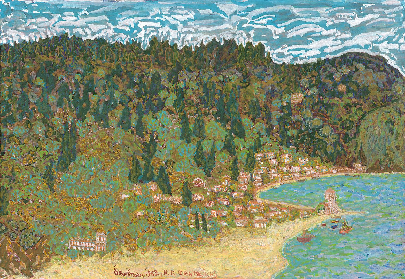 Ζωγράφος αυτοδίδακτος («μα κάθε άλλο παρά απλοϊκός και άτσαλος») ο Νίκος-Γαβριήλ Πεντζίκης (1908-1993) πλούτισε τη νεοελληνική ζωγραφική με καινούργια πρωτοφανέρωτα χαρακτηριστικά. Aναθρεμμένος στη βυζαντινή Θεσσαλονίκη, βαθύς γνώστης της βυζαντινής γραμματείας και τέχνης αλλά και κάτοχος, από πολύ νωρίς όλων των ρευμάτων και των τάσεων του ευρωπαϊκoύ μοντερνισμού και της αβανγκάρντ, συνδύασε στα έργα του την παράδοση με στοιχεία των μετεμπρεσιονιστών φτάνοντας σε εντελώς προσωπικές διατυπώσεις.