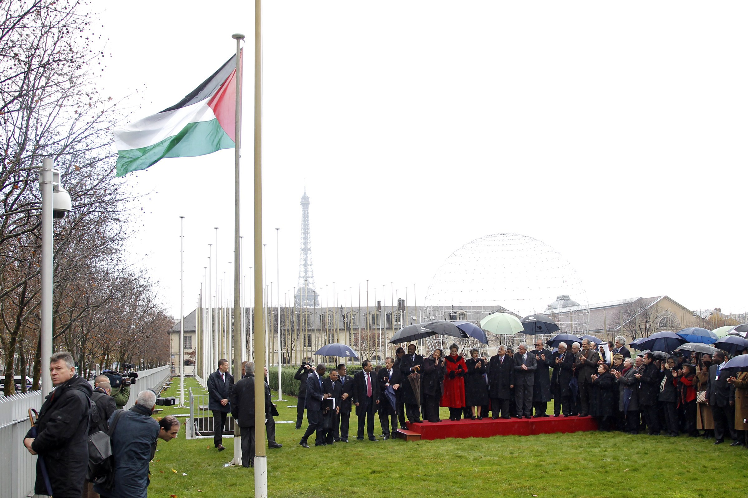 Σε μία συμβολική, αλλά ιδιαίτερης σημασίας κίνηση προχώρησε την Τρίτη ο παλαιστίνιος πρόεδρος, Μαχμούντ Αμπάς, παρουσία 50 διπλωματών αλλά και δημοσιογράφων: Υψωσε τη σημαία της Παλαιστίνης στο κεντρικό κτίριο της UNESCO στο Παρίσι, εκφράζοντας την ελπίδα του ότι η κίνηση αυτή να ανοίξει τον δρόμο «για τη διεθνή αναγνώριση της χώρας».