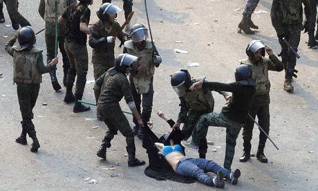 Διεθνή κατακραυγή και σοκ στον αραβικό κόσμο έχουν προκαλέσει φωτογραφίες και βίντεο που δείχνουν τον βάναυσο ξυλοδαρμό, στην πλατεία Ταχρίρ της Αιγύπτου, μιας άγνωστης γυναίκας που είναι γυμνή από την μέση και επάνω.