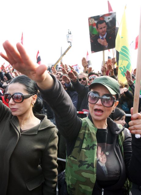 Την ίδια στιγμή, υποστηρικτές του Μπασάρ αλ-Άσαντ διαδηλώνουν διακηρύσσοντας πίστη στο καθεστώς στην κεντρική πλατεία Ουμαγιάντ της Δαμασκού.