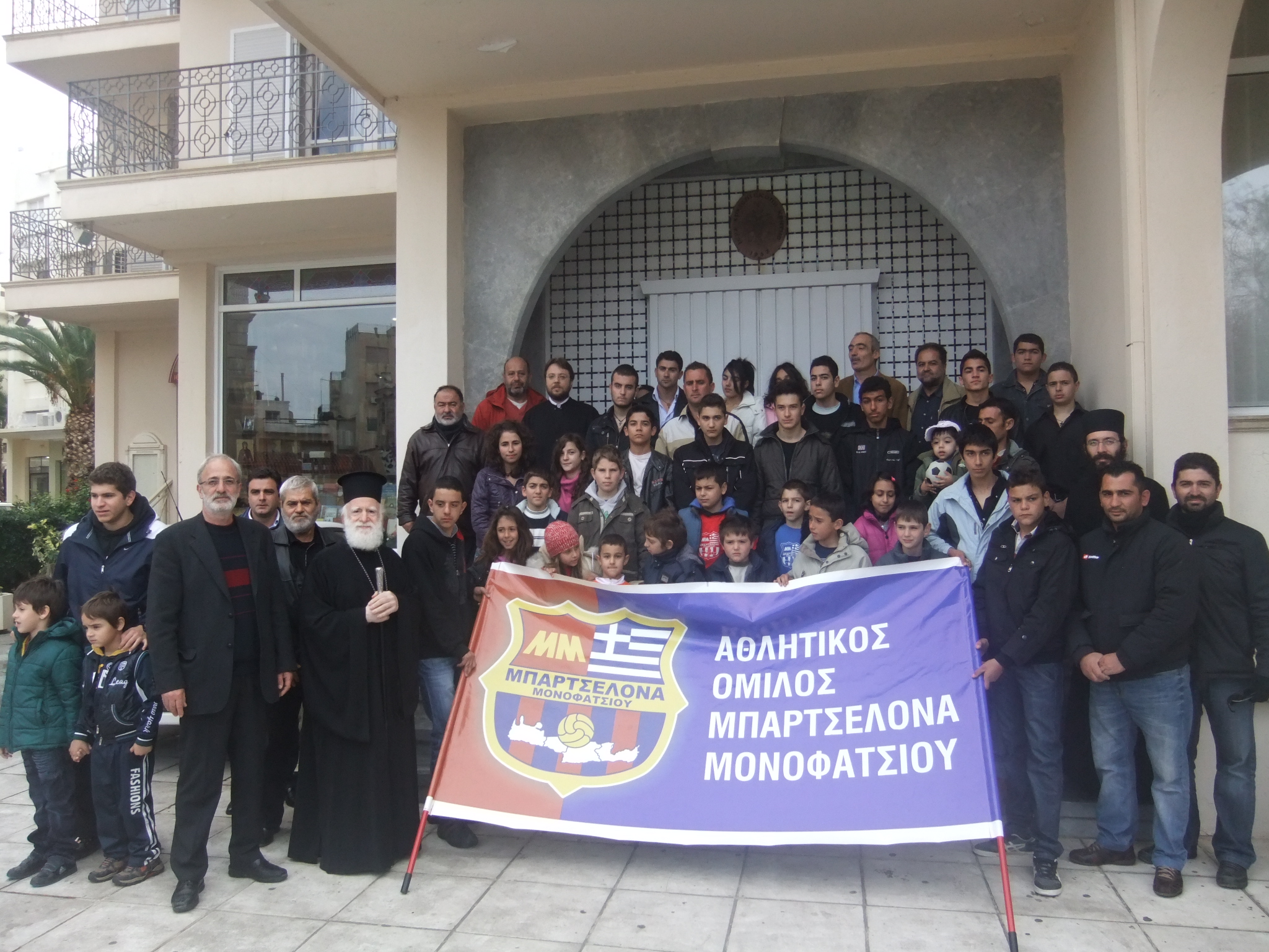 Την παραμονή των Χριστουγέννων η προσωρινή διοικούσα επιτροπή του Αθλητικού Ομίλου Μπαρτσελόνα Μονοφατσίου, συνοδευόμενη από τους προπονητές και αντιπροσωπεία των παιδιών της ακαδημίας και των αθλητών της, επισκέφθηκε τον Αρχιεπίσκοπο Κρήτης Ειρηναίο και αφού του τραγούδησαν όλοι μαζί τα κάλαντα, ζήτησαν την ευλογία του πριν την έναρξη της πρώτης αθλητικής δραστηριότητας της ομάδας, η οποία θα πραγματοποιηθεί την Τετάρτη 28 Δεκεμβρίου και ώρα 2 μ.μ. στο γήπεδο Λιγορτύνου.