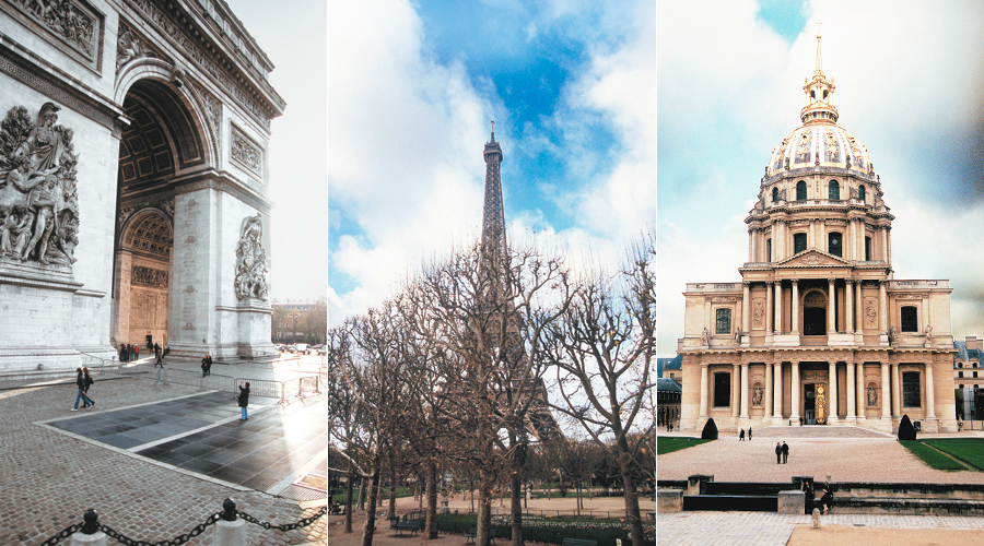 Και ποιος δεν έχει ακουστά τα Ηλύσια Πεδία και την Αψίδα του Θριάµβου; Αλλωστε κάθε παραµονή Πρωτοχρονιάς εκεί συγκεντρώνονται κάτοικοι και επισκέπτες της πόλης για να υποδεχθούν τον νέο χρόνο. Τα δέντρα της λεωφόρου Σανς Ελυζέ στολίζονται µε χιλιάδες λαµπιόνια, ενώ λίγα τετράγωνα προτού η λεωφόρος καταλήξει στην πλατεία Οµονοίας κιόσκια µε λιχουδιές και διακοσµητικά δώρα στήνονται κατά µήκος του δρόµου, κοντά στους περίφηµους Κήπους µε παρτέρια µε χειµωνιάτικα λουλούδια, κρήνες, περίπτερα και σιντριβάνια, µονοπάτια – µια όαση στην καρδιά της πόλης. Ο πρώην λαχανόκηπος του 17ου αιώνα και νυν κεντρικότερος δρόµος του Παρισιού και τόπος των παρελάσεων διαθέτει και πολυτελή καταστήµατα, υψηλής γαστρονοµίας εστιατόρια, κινηµατογράφους και κτίρια νεοκλασικού και αρ νουβό ρυθµού, αλλά και κάποια από τα πιο αριστοκρατικά ξενοδοχεία. Παράλληλος της κεντρικής λεωφόρου η οδός Σεντ Ονορέ, όπου εδρεύουν τα διασηµότερα ονόµατα της γαλλικής υψηλής ραπτικής, και το Ανάκτορο των Ηλυσίων – κατοικία του προέδρου της Γαλλικής ∆ηµοκρατίας. Η λεωφόρος Σανς Ελυζέ αρχίζει από την πλατεία Σαρλ ντε Γκωλ ή αλλιώς Ετουάλ που σχεδίασε ο βαρόνος ΟΣµάν, µε την πιο φηµισµένη Αψίδα Θριάµβου του κόσµου που κατασκευάστηκε χάρη στον Ναπολέοντα µετά τη νίκη του στο Αούστερλιτς (1805). Από εδώ ξεκινούν ακτινωτά 12 λεωφόροι. Ο Ζαν Σαλγκρέν σχεδίασε την ύψους 50 µέτρων αψίδα που ολοκληρώθηκε το 1836. ∆ιακοσµηµένη µε αγάλµατα, ζωφόρο, τριάντα µικρές αψίδες κάτω από την οροφή της Αψίδας, ανάγλυφα, φέρει τα ονόµατα των αξιωµατικών της αυτοκρατορικής φρουράς. Εδώ βρίσκεται και το µνηµείο του Αγνωστου Στρατιώτη, και από εδώ µίλησε ο Ντε Γκωλ στα πλήθη µετά την απελευθέρωση του Παρισιού το 1944.