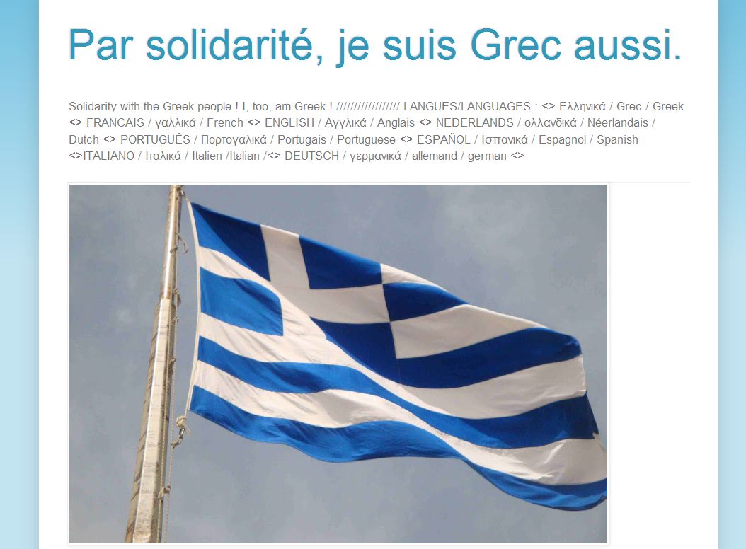Στον διαδικτυακό τόπο https://jesuisgrec.blogspot.com Ευρωπαίοι υπογράφουν κείμενο αλληλεγγύης προς την Ελλάδα και ζητούν την ελληνική υπηκοότητα, θέλοντας να δηλώσουν τη συμπαράστασή τους.