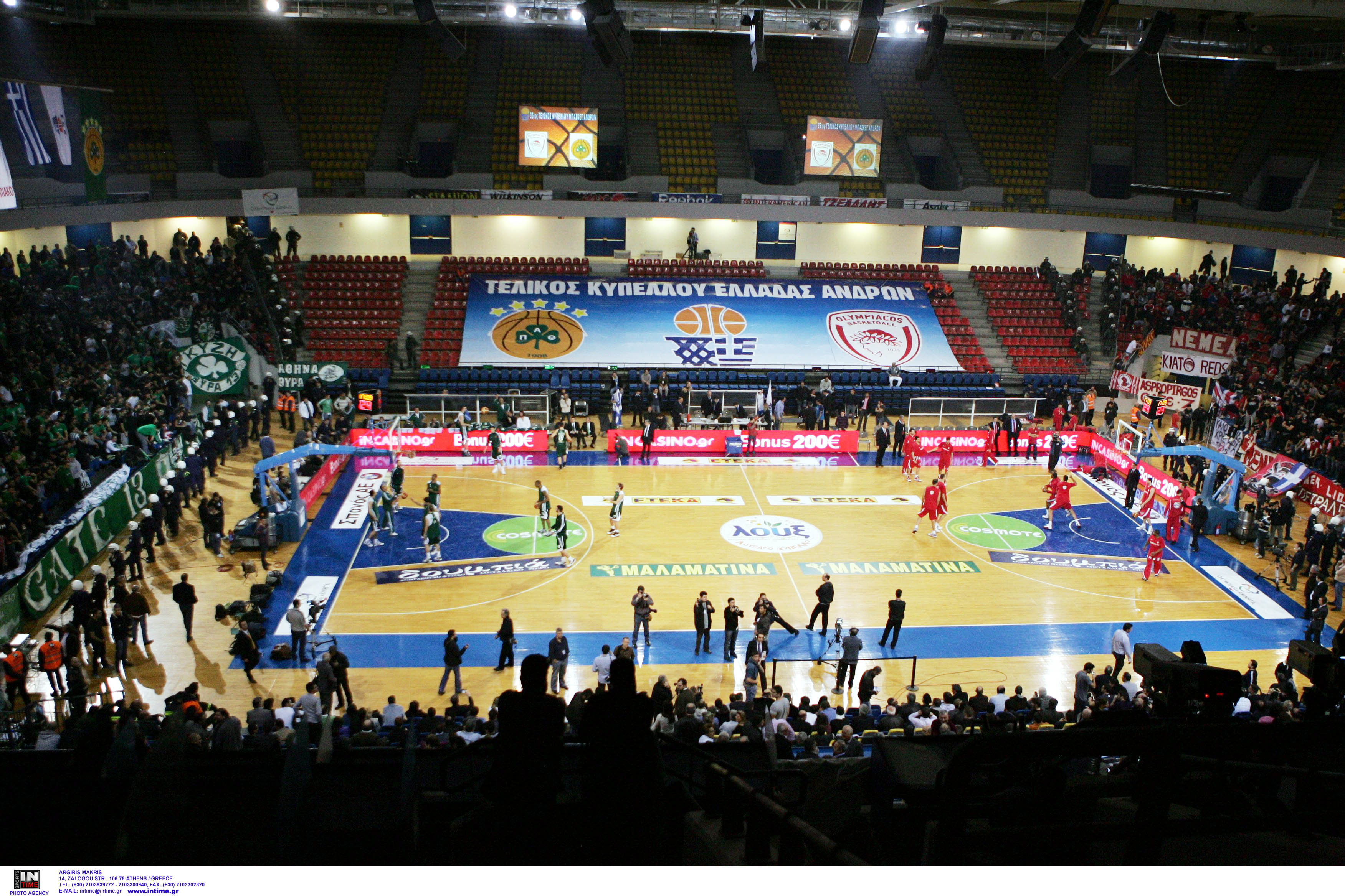 Αναλυτικά η ανακοίνωση της ΕΟΚ: «Ο τελικός αγώνας του Κυπέλλου Ελλάδας Ανδρών 2011-2012 μεταξύ των Σωματείων ΚΑΕ Ολυμπιακός ΣΦΠ – Παναθηναϊκός ΑΟ ΚΑΕ, θα διεξαχθεί το Σάββατο 10/3/2012 και ώρα 18.30 στο Κλειστό Ολυμπιακό Γυμναστήριο Ελληνικού και θα μεταδοθεί από την Κρατική Τηλεόραση».