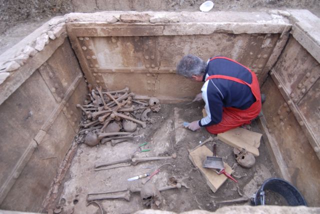 Με αρχιτεκτονικά μέλη από το ανάκτορο των Αιγών είχε κτισθεί ένας τάφος της Παλαιοχριστιανικής εποχής που ήρθε στο φως τον περασμένο Νοέμβριο κατά τις αρχαιολογικές εργασίες που πραγματοποιούνται στο χώρο του μνημείου. Οπως διαπίστωσε μάλιστα η αρχαιολόγος Αγγελική Κοτταρίδη, προϊσταμένη της Εφορείας Αρχαιοτήτων Αιγών τα συγκεκριμένα μέλη προέρχονται από τον άνω όροφο του κτιρίου, η εικόνα του οποίου αποκτά τώρα σαφέστερα χαρακτηριστικά.