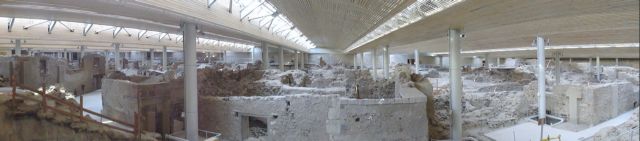 Τη μοναδική εμπειρία να περπατά κανείς στους δρόμους όπου πατούσαν κάποτε οι κάτοικοι του Ακρωτηρίου βλέποντας τα σπίτια τους και ταυτόχρονα σε μικρές θεματικές εκθέσεις αντικείμενα που διασώθηκαν από την έκρηξη του ηφαιστείου θα έχουν οι επισκέπτες του οικισμού. Ο καθηγητής κ. Χρίστος Ντούμας, διευθυντής των ανασκαφών στο Ακρωτήρι από το 1975 και ο άνθρωπος που προώθησε ιδιαίτερα την ιδέα της κατασκευής νέου στεγάστρου, κυρίως βέβαια για την προστασία του χώρου, έχει αρχίσει εδώ και μερικούς μήνες την οργάνωση των εκθέσεων, η ολοκλήρωση των οποίων όμως θα απαιτήσει χρόνο και χρήμα.