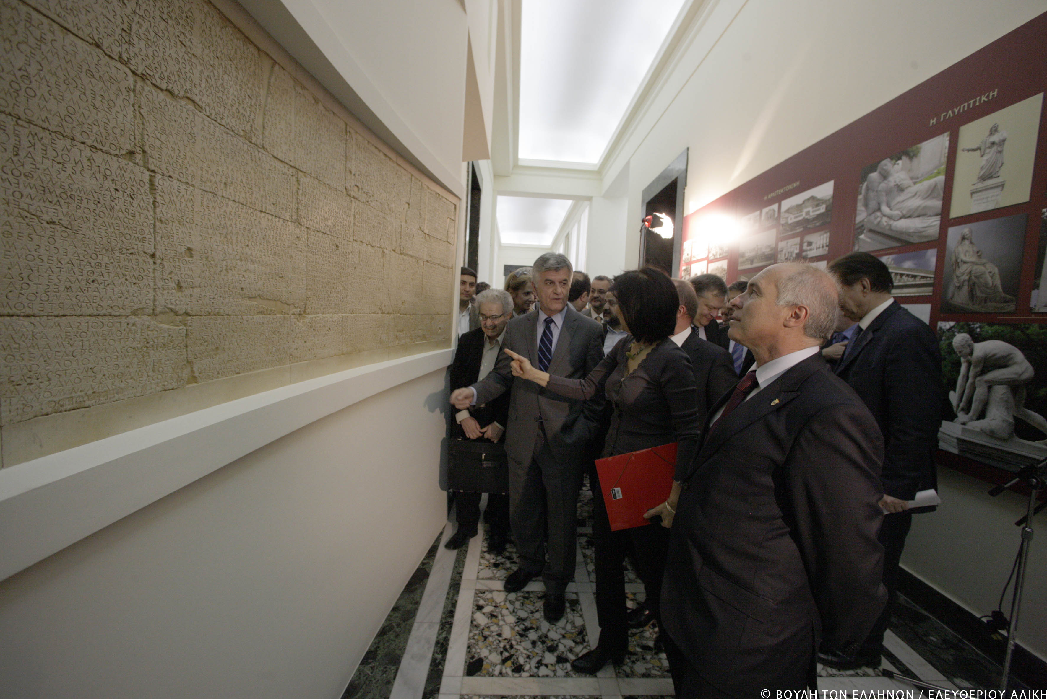 Πρόκειται για ένα από τα σημαντικότερα ελληνικά επιγραφικά μνημεία, το οποίο που αποτελεί δωρεά της νομαρχίας της ιταλικής Περιφέρειας του Τρέντο στο Ελληνικό Κοινοβούλιο και από σήμερα βρίσκεται εντοιχισμένη σε κοιλότητα του τοιχώματος έξω από την αίθουσα Ελευθερίου Βενιζέλου της Βουλής.
