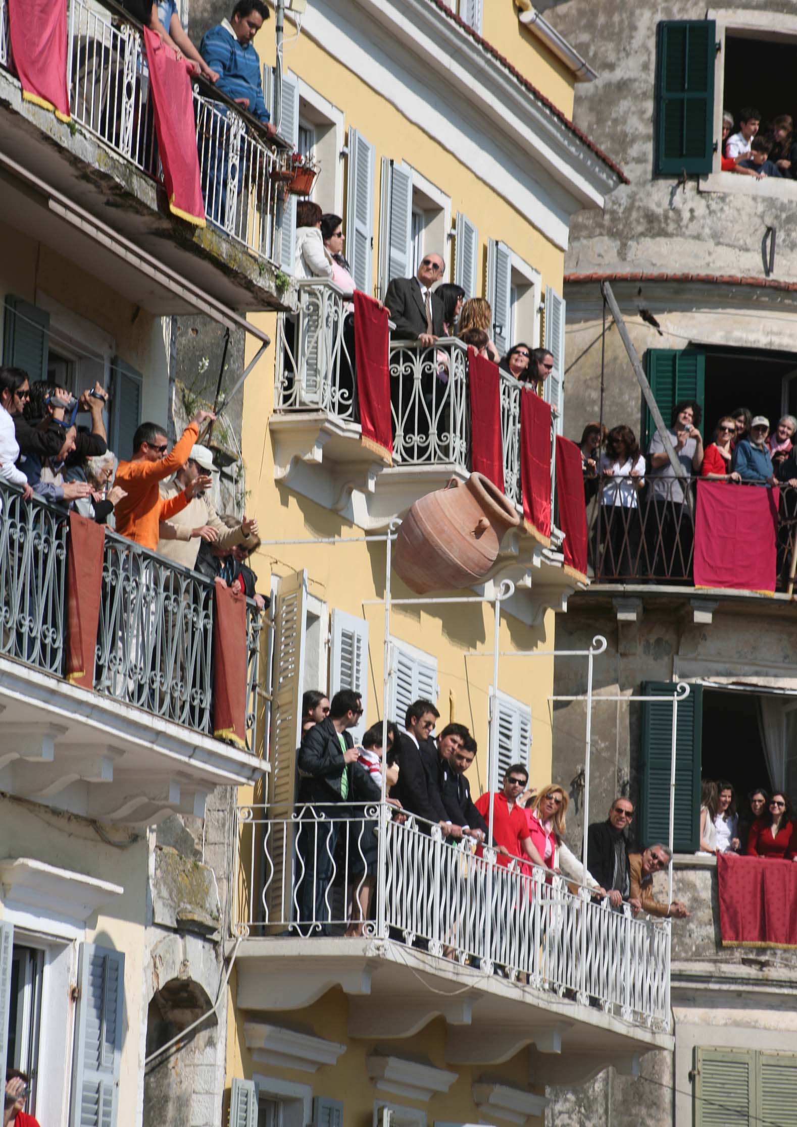 Στην Κέρκυρα, οι «μπότιδες» πέφτουν… βροχή. Στις 11 το πρωί του Μ. Σαββάτου όταν τελειώσει η ακολουθία της πρώτης Ανάστασης στη Μητρόπολη και αφού τελειώσει και η περιφορά του επιταφίου του Αγίου Σπυρίδωνα, χτυπούν οι καμπάνες των εκκλησιών και από τα παράθυρα των σπιτιών πέφτουν κατά χιλιάδες, πήλινα δοχεία γεμάτα νερό (μπότιδες) στους δρόμους, με μεγάλο κρότο. Αυτό το έθιμο έχει τις ρίζες του στο χωρίον του Ευαγγελίου «Συ δε Κύριε Ανάστησόν με ίνα συντρίψω αυτούς ως σκεύη κεραμέως».