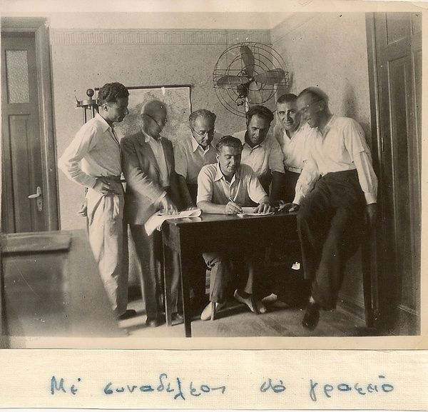«Θυμάμαι ότι, ενώ όλοι τότε γράφαμε στα γνωστά δημοσιογραφικά μπλοκ, εκείνος ζητούσε από τον καφετζή ένα μαχαίρι για να κόψει στη μέση τα χαρτιά. Κι έτσι έγραφε στο μισό χαρτί με μια χρυσή πένα Πάρκερ – ποτέ με στυλό ή απλό Μπικ. Οσο έγραφε δεν σήκωνε καθόλου το κέφαλο. Μόλις τελείωνε, πήγαινε να παραδώσει το χειρόγραφό του στην ύλη. Υπεύθυνος ήταν τότε ο Μαγγανάρης, στον οποίο το παρέδιδε με τη φράση “bonjour jeunesse” (“καλημέρα νιότη”), μια φράση που χρησιμοποιούσε πολύ ο υλατζής, γιατί δεν ήταν πια και τόσο νέος… Επειτα επέστρεφε στο γραφείο, έπινε ένα ουζάκι με ένα φθηνομεζεδάκι, άναβε ένα τσιγάρο και έφευγε».
