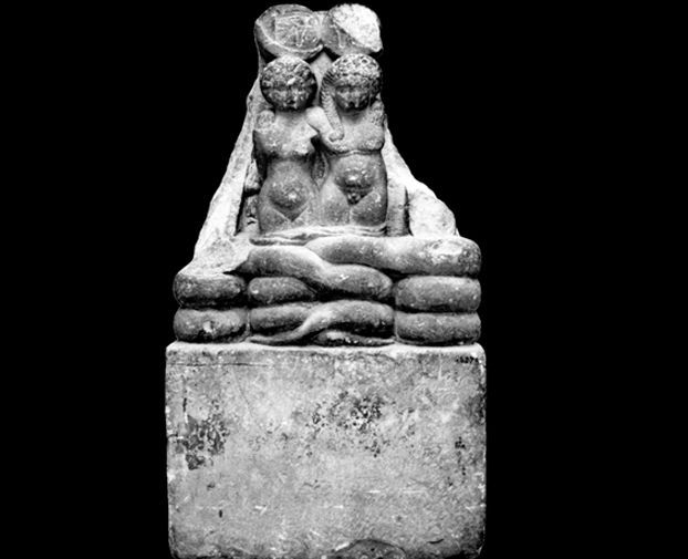 Το πιο καθοριστικό στοιχείο είναι όμως, ότι το αγόρι φέρει έναν ηλιακό δίσκο στο κεφάλι του και το κορίτσι μία ημισέληνο. Αλλά και τα φίδια, που είναι πιθανότατα δύο κόμπρες συμβολίζουν επίσης τον ήλιο και τη σελήνη. Και τα δύο εξάλλου φέρουν από ένα μάτι του Ωρου, σύμβολο συνηθισμένο στην αιγυπτιακή τέχνη.«Τα πρόσωπα δεν διατηρούνται σε καλή κατάσταση αλλά μπορούμε να δούμε ότι το αγόρι έχει βοστρύχους και μια κορδέλα στο δεξί μέρος του κεφαλιού, χαρακτηριστικό των παιδιών των Αιγυπτίων ενώ τα μαλλιά του κοριτσιού είναι χτενισμένα με χαρακτηριστική κόμμωση, που συνδέεται με τη δυναστεία των Πτολεμαίων και ειδικά με την Κλεοπάτρα», λέει η αιγυπτιολόγος Τζουζέπα Καπριότι.