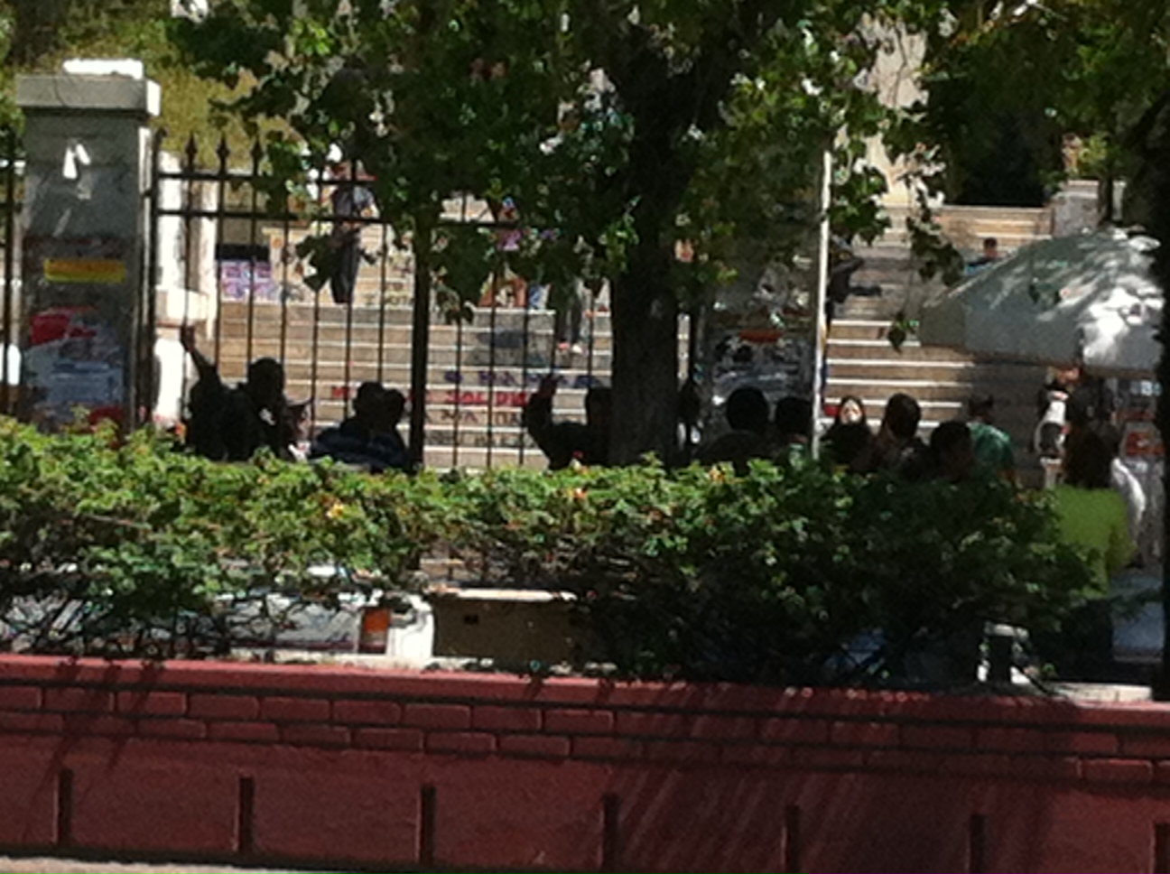 Πίσω από τα κάγκελα και μέσα στον αυλόγυρο της σχολής – τώρα το βλέπω – μαύροι και μελαχρινοί – δεν ξέρω εθνικότητες οπότε θα μείνω στην περιγραφή του χρώματος, λυπάμαι – με τα γνωστά σεντόνια δεμένα και φορτωμένα στην πλάτη.