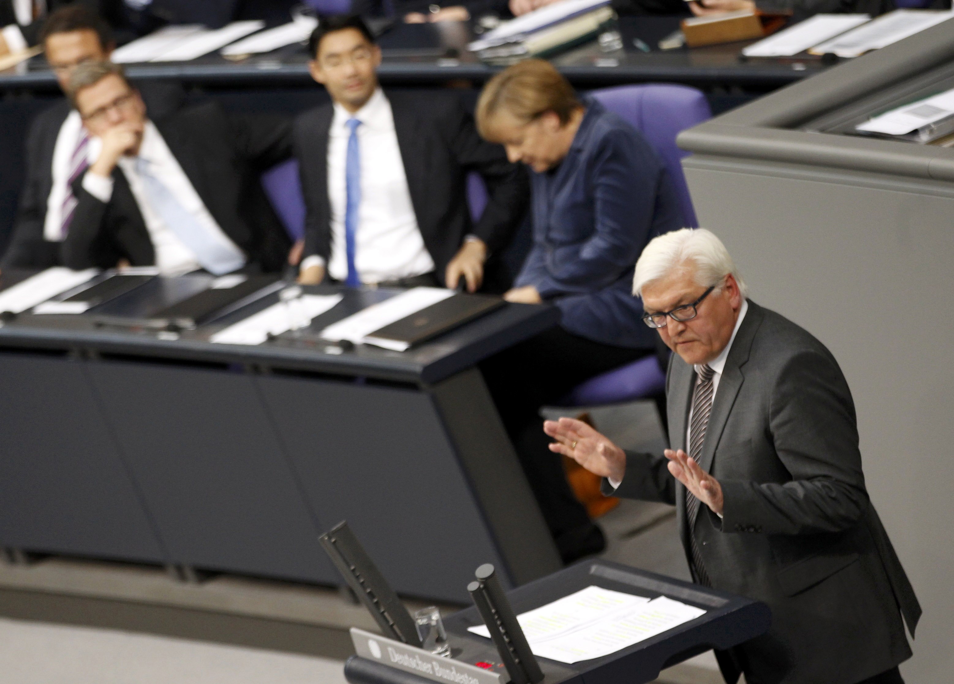 Ο Στάινμαϊερ επέκρινε την επίθεση Μέρκελ στον Ολάντ ως «πολικά ανόητη και ανάρμοστη». Σε ολόκληρη την Ευρώπη, ανέφερε, συμφωνούν οικονομολόγοι, κυβερνήσεις και Κομισιόν πως για να σταθεί στα πόδια της η ευρωπαϊκή οικονομία δεν αρκεί το Δημοσιονομικό Σύμφωνο, αλλά χρειάζεται και ένα «Σύμφωνο Ανάπτυξης». «Ο μελλοντικός πρόεδρος της Γαλλίας Φρανσουά Ολάντ» είπε χαρακτηριστικά ο Στάινμαϊερ «δεν προτείνει τίποτε διαφορετικό».