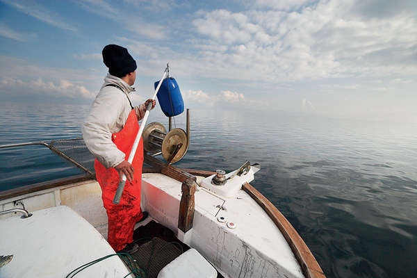 Καθώς ο Πάνος τραβάει με μια τροχαλία – την ανέμη – εκατοντάδες οργιές από δίχτυα, του ζητάω να μου διευκρινίσει εκείνη τη δήλωση-αίνιγμα που ξεστόμισε. Η εξήγηση λοιπόν είναι πως μπορεί ο ψαράς να έχει ρίξει τα δίχτυα του αποβραδίς, αλλά να μην πάει να τα μαζέψει πρωί πρωί. Να τα αφήσει ακόμη και δύο ημέρες. Ετσι τα ψάρια που θα πιαστούν πρώτα στα δίχτυα, αν είναι ευαίσθητα, πεθαίνουν αμέσως και παραμένουν βέβαια μέσα στο νερό.