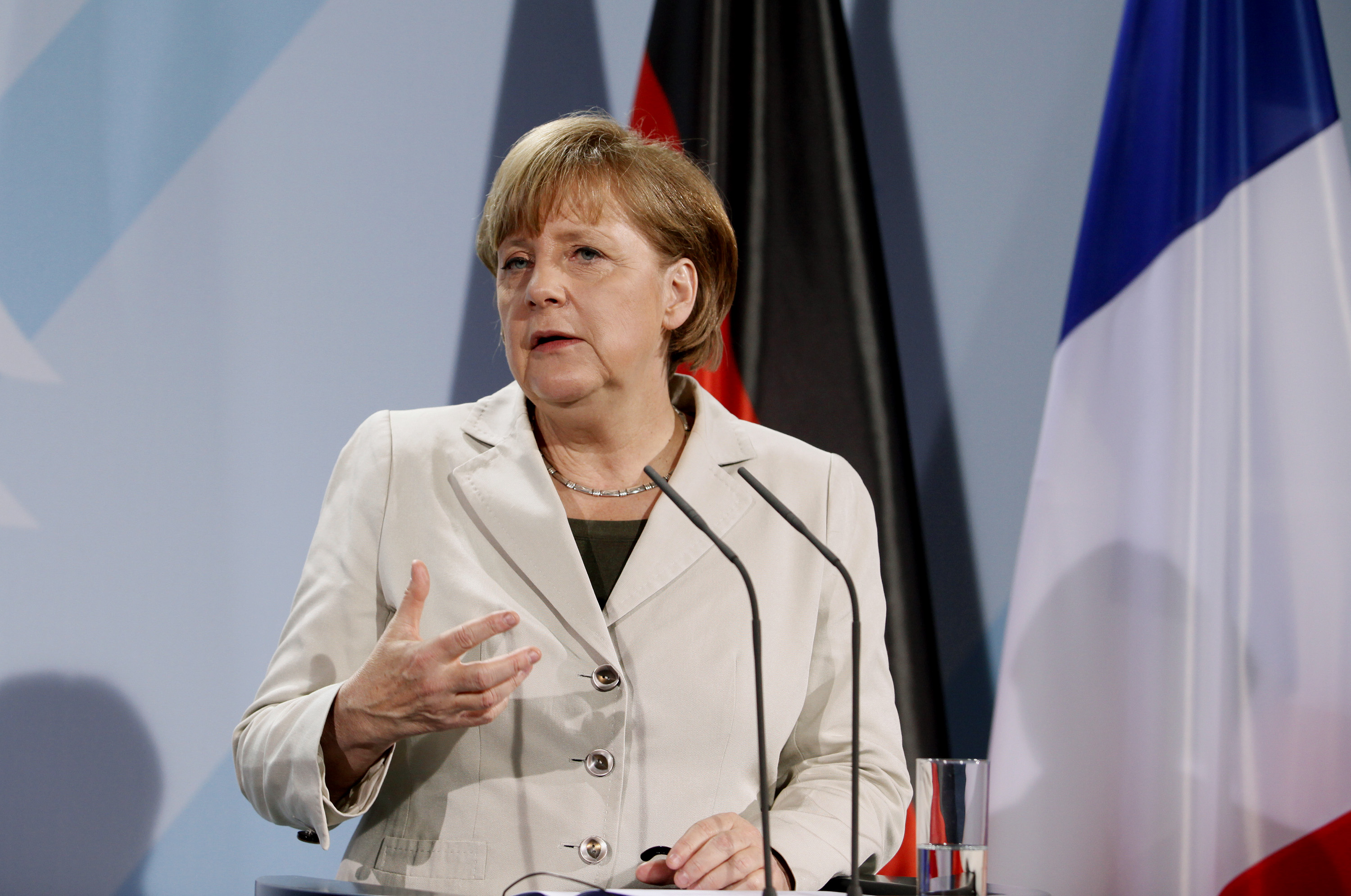 Μία ημέρα μετά την επίσημη «πρώτη» με τον νέο γάλλο πρόεδρο κ. Φρανσουά Ολάντ, με την Ελλάδα να οδηγείται σε νέες εκλογές, την Ισπανία να σημειώνει ιστορικά υψηλά σε σπρεντ και επιτόκια και τον ισπανό πρωθυπουργό Μαριάνο Ραχόι να προειδοποιεί σήμερα ότι η Ισπανία κινδυνεύει «αποκλειστεί από τις αγορές», η κυρία Μέρκελ συντάχθηκε με τις απόψεις του προέδρου του Eurogroup και πρωθυπουργού του Λουξεμβούργου κ. Ζαν-Κλοντ Γιούνκερ.