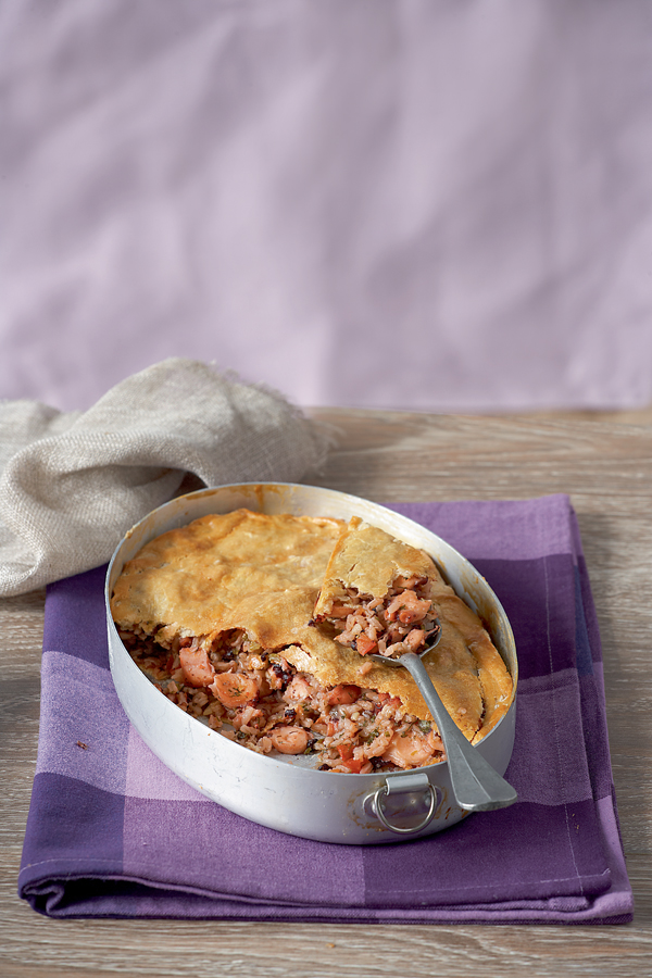 Σύνθεση: Προθερμαίνουμε τον φούρνο στους 170°C – 180°C. Απλώνουμε στο ταψί το ένα φύλλο και από πάνω στρώνουμε ομοιόμορφα τη γέμιση. Κλείνουμε με το δεύτερο φύλλο, αλείφουμε με λίγο λάδι την επιφάνεια της πίτας και ψήνουμε για περίπου 1 ώρα.