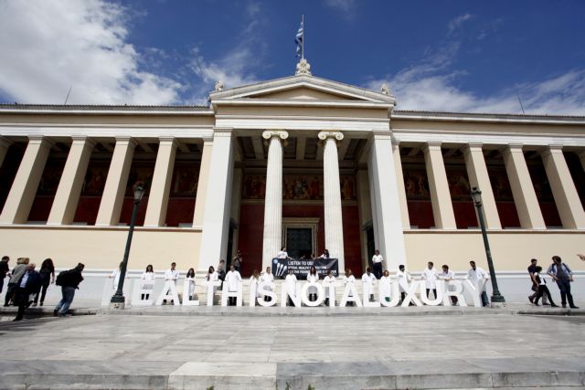 Το μήνυμα ότι η υγεία δεν είναι πολυτέλεια έστειλαν εκπρόσωποι και εθελοντές της Οργάνωσης «Γιατροί του Κόσμου» από τα Προπύλαια του Πανεπιστημίου της Αθήνας. «Μαζευτήκαμε πρώτη φορά στην Ελλάδα, οι αντιπρόσωποι του δικτύου από 14 χώρες γιατί θέλουμε να δείξουμε την αλληλεγγύη μας προς μια χώρα κι ένα λαό που δοκιμάζονται σκληρά από την οικονομική και κοινωνική κρίση», τόνισε ο Δρ. Ολιβιέ Μπερνάρ, Πρόεδρος των ΓτΚ Γαλλίας.