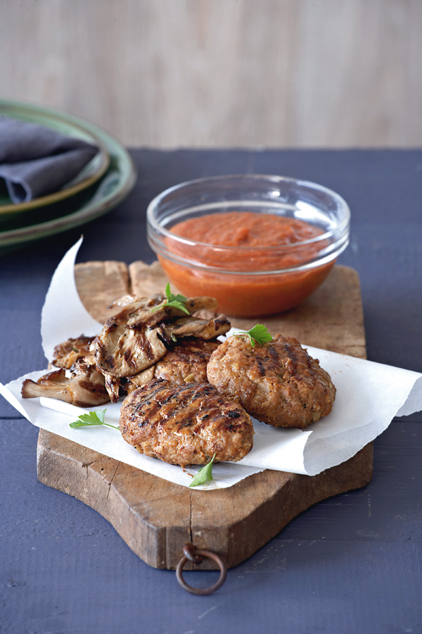 Συνοδεύουμε τα μπιφτέκια με τη σάλτσα BBQ και με μια πράσινη δροσερή σαλάτα.