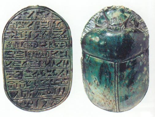 Σκαραβαίοι, μικρά γλυπτά από φαγεντιανή με τη μορφή αιγυπτιακών θεοτήτων και συμβόλων, όπως επίσης και αγγεία από φαγεντιανή είναι τα αντικείμενα αυτά. Εκτός από τις αιγυπτιακές εισαγωγές υπήρχαν όμως και ασιατικές και αιγαιακές απομιμήσεις του 7ου π. Χ. αιώνα (Ρόδος, Μίλητος, Περαχώρα κλπ.). Σαφής μάλιστα είναι κι ο λόγος της προτίμησής τους, που είχε να κάνει με την υποτιθέμενη μαγική ιδιότητά τους, όσον αφορά την γυναικεία γονιμότητα και την προστασία των νεαρών παιδιών. Επιπλέον υπάρχουν και αιγυπτιακά χάλκινα και πάνω απ’ όλα τα πολυάριθμα κομμάτια της 25ης και 26ης δυναστείας που βρέθηκαν στο Ηραίον της Σάμου.