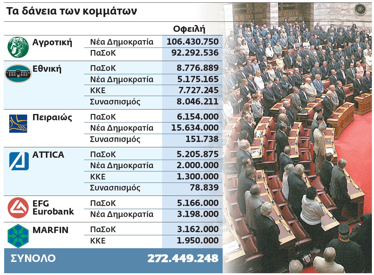 - Τα κόμματα είναι πολλές φορές κακοπληρωτές και εμφανίζονται να μην εξυπηρετούν τα δάνειά τους, αφού πολλές φορές οι δόσεις είναι ληξιπρόθεσμες.