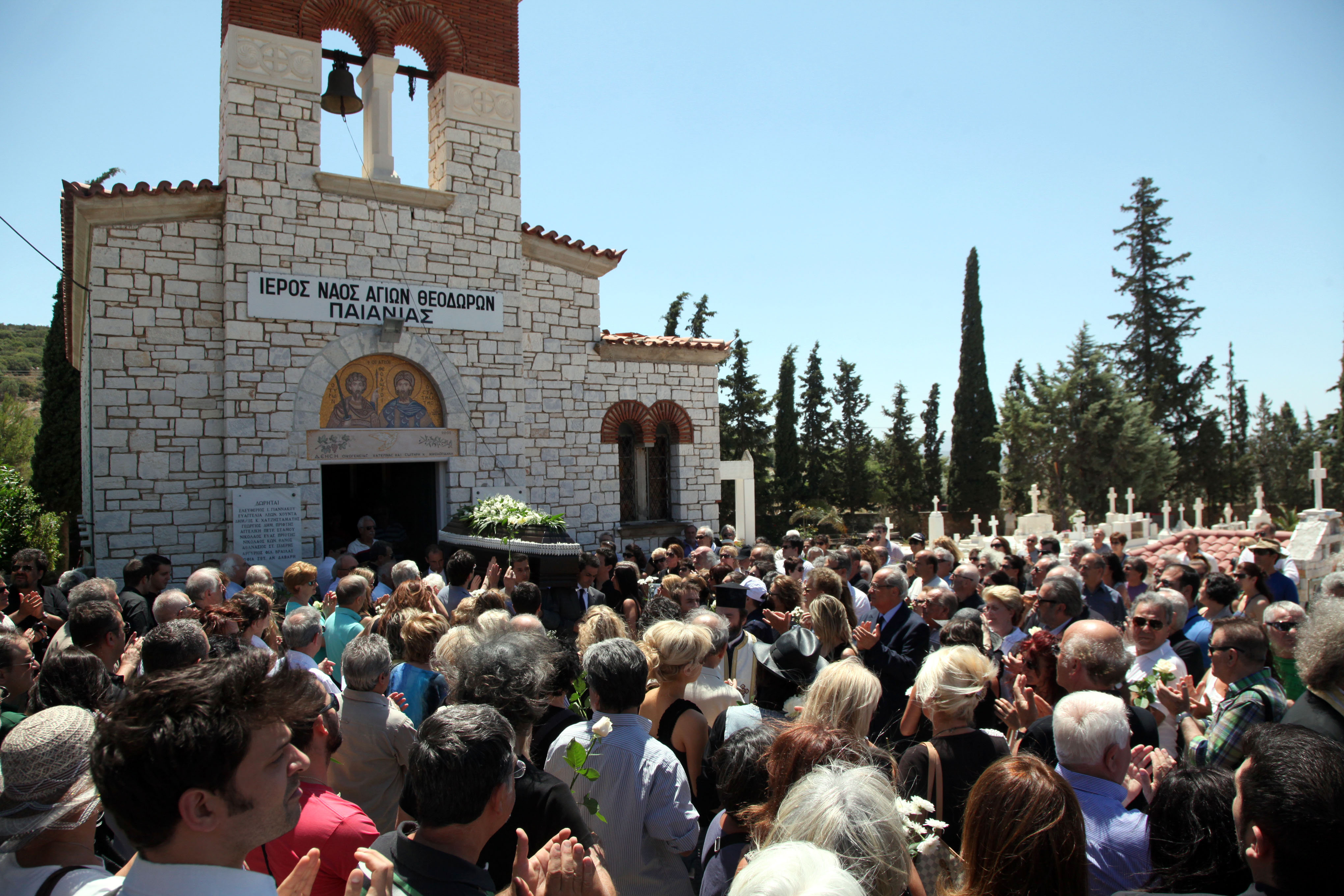 Χωρίς επικήδειους -σύμφωνα με την επιθυμία του ιδίου- λίγο νωρίτερα εψάλη η εξόδιος ακολουθία στον Ιερό Ναό Αγίων Θεοδώρων, στην Παιανία.