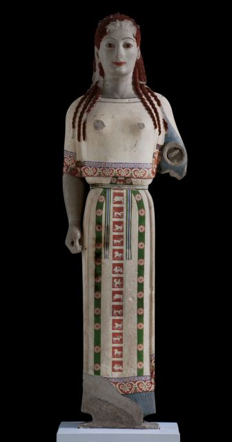 Το κόκκινο στα μαλλιά της Πεπλοφόρου. Το βαθύ κυανό για τα γένια και τα μαλλιά του Τρισώματου Δαίμονα. Το πράσινο στον χιτώνα της Χιώτισσας. Χωρίς προσπάθεια οι επισκέπτες του Μουσείου Ακρόπολης μπορούν να παρατηρήσουν τα χρώματα, που διατηρήθηκαν επάνω στο μάρμαρο των Αρχαϊκών γλυπτών _Κόρες κυρίως_ παίρνοντας μια ιδέα για τον χρωματισμό των αγαλμάτων στην αρχαιότητα. Ασχέτως αν με το χρόνο, το σημερινό χρώμα απέχει από το αρχικό: Η Πεπλοφόρος δηλαδή, ήταν καστανομαλλούσα και ο χιτώνας της Χιώτισσας είχε χρώμα φωτεινό γαλάζιο και όχι πράσινο, όπως φαίνεται τώρα.