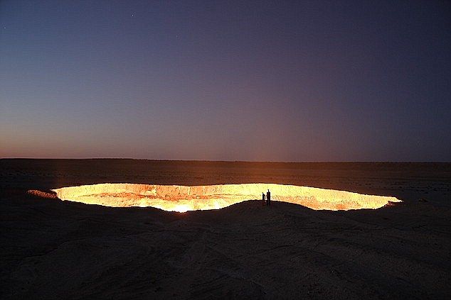 Ονομάζεται Νταρβάζα ή αλλιώς «πύλη της κολάσεως». Η απόκοσμη όψη του, θα μπορούσε να θυμίζει σκηνή από τον κρατήρα του «σκοτεινού» ηφαιστείου Μάουντ Ντουμ στην τριλογία «Ο Αρχοντας των Δαχτυλιδιών». Στην πραγματικότητα όμως, πρόκειται για έναν γιγάντιο κρατήρα στην έρημο Καρακούμ, στο Τουρκμενιστάν, ο οποίος δημιουργήθηκε από γεωλόγους που μελετούσαν την περιοχή πριν από περίπου 40 χρόνια.