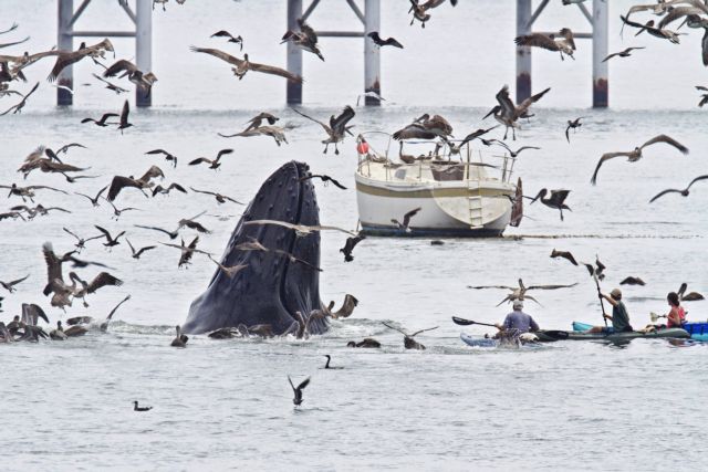 Σύμφωνα με το πρακτορείο Associated Press, εχει γίνει πλέον καθημερινό φαινόμενο στην περιοχή γλάροι να επιτίθενται στην ράχη των φαλαινών προκειμένου να βρουν τροφή, κάθε φορά που αυτές έρχονται στην επιφάνεια για να αναπνεύσουν. Οι γλάροι περιμένουν εκείνη τη στιγμή για να τσιμπήσουν με τα ράμφη τους την ράχη των φαλαινών δημιουργώντας τους ανοιχτές πληγές, και κόβοντας κάθε φορά λίγο από το δέρμα και το λίπος των άτυχων θηλαστικών.