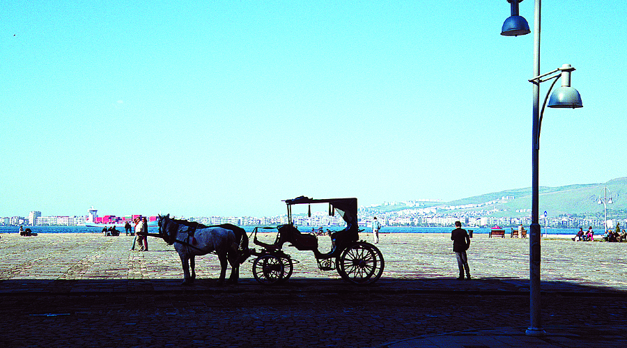 Από τα παλαιότερα οικοδομήματα της πόλης, το Καραβάν Σαράι αυτό, κτίστηκε στα 1741 κατ’ εντολήν του σουλτάνου Μαχμούτ Ι Αγκά και είναι ξεχωριστό δείγμα οθωμανικής αρχιτεκτονικής. Στο τεϊοποτείο πίνουμε μυρωδάτο τσάι χαζεύοντας τον κόσμο που πηγαινοέρχεται στα μαγαζάκια με τις υποτιθέμενες αντίκες. Στο παλιό φωτογραφείο, ο μαγαζάτορας-φωτογράφος μιλάει με θαυμασμό για τη σύγχρονη φωτογραφική τέχνη στην Τουρκία, και παραθέτει τουρκικά περιοδικά και λευκώματα, αποκαλύπτοντάς μου ένα ακόμη πρόσωπο της πόλης. Το ίδιο βράδυ στην «Izmir Delvet Opera ve Balesi» στην παράσταση μπαλέτου, το κοινό είναι ενθουσιώδες και γνωρίζει τα σημεία όπου μπορεί να χειροκροτήσει.