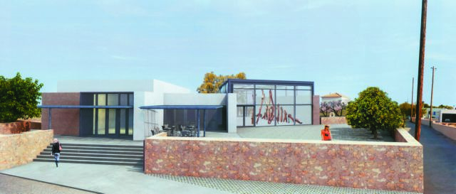 Ενα χαμηλό, κομψό και λειτουργικό κτίριο. Σε ύψος και όγκο απόλυτα συνυφασμένο με τον περιβάλλοντα χώρο αλλά και με όλο το νησί. Για το οποίο μάλιστα υπάρχει ένα ειδικό «δώρο»: μια τεράστια αίθουσα, διαφανής από όλες τις πλευρές της, ώστε να κατακλύζεται από το φως του ήλιου της Αίγινας προκειμένου να εκτεθούν εκεί τα γλυπτά του Χρήστου Καπράλου τα οποία φιλοτεχνήθηκαν στο νησί.