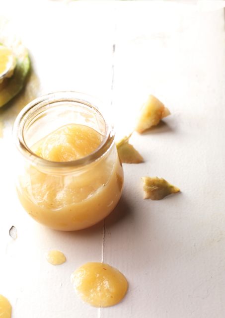 Αφαιρούμε τη γάζα με τα αρωματικά. Αν θέλουμε η σάλτσα μας να έχει κομματάκια μήλου, τη δουλεύουμε για λίγο με τον πολτοποιητή της πατάτας ή με ένα πιρούνι. Αν τη θέλουμε λεία, χρησιμοποιούμε το ραβδομπλέντερ, το multi ή τον μύλο λαχανικών και την περνάμε από λεπτή σήτα.