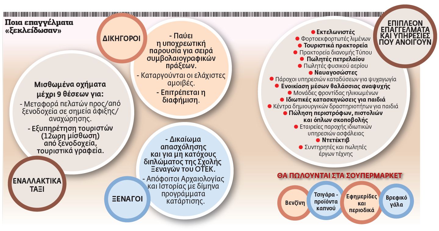 Οι νέες ρυθμίσεις θα επιτρέπουν, επί παραδείγματι, σε έναν άνεργο αρχαιολόγο που κατέχει δίπλωμα αυτοκινήτου και μιλάει ξένες γλώσσες να δουλέψει ως ξεναγός-οδηγός τουριστών από το εξωτερικό.