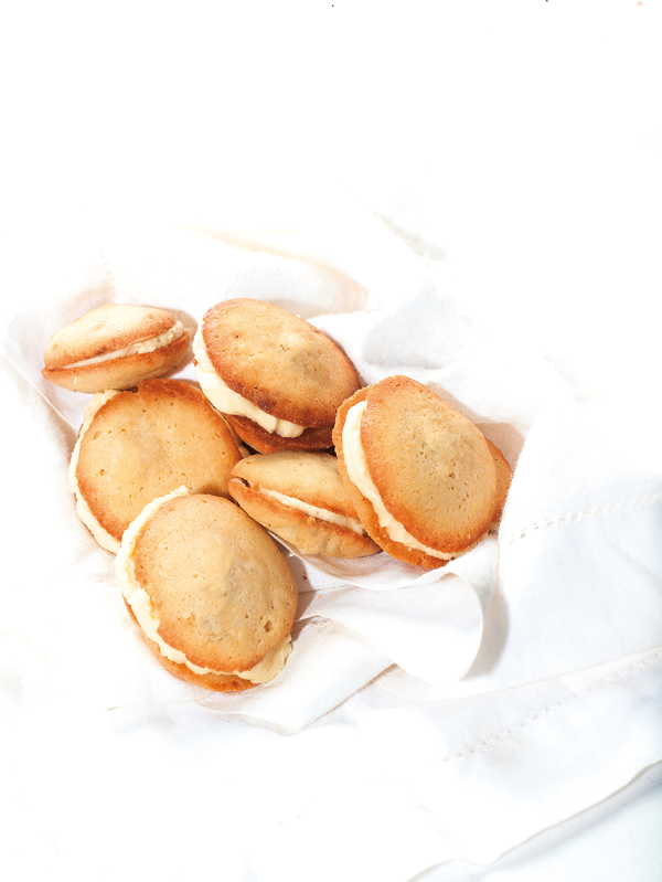 Σύνθεση: Γυρίζουμε τους μισούς εργολάβους ανάποδα και τους γεμίζουμε με την κρέμα. Κλείνουμε με τους άλλους μισούς δημιουργώντας μικρά σάντουιτς.