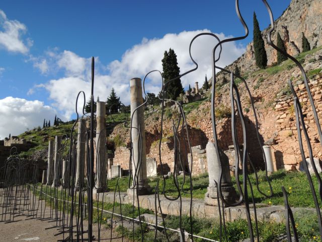 Ξαφνιασμένοι οι επισκέπτες έβλεπαν πριν από λίγες ημέρες στους Δελφούς ανθρώπινες μορφές, σιδερένιες αλλά αέρινες, σαν περιγράμματα μέσα στον χώρο, να στήνονται κατά συστάδες ανάμεσα στα αρχαία, να «παρατηρούν» αλλά και να παρατηρούνται, να «συνομιλούν» μεταξύ τους και να «εισπράττουν» τη δυναμική του τοπίου. Η έκπληξη έδωσε πολύ γρήγορα τη θέση της στον ενθουσιασμό. Κάποιοι άρχισαν να χειροκροτούν, άλλοι ρωτούσαν να μάθουν.