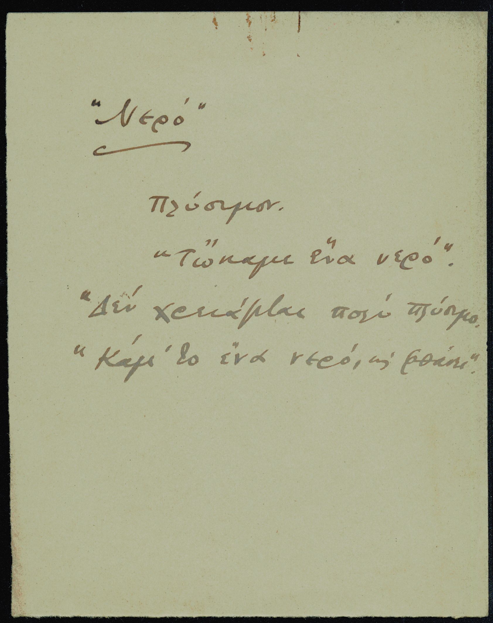 Στο λεξικό αυτό είχε αναφερθεί ο Γ. Π. Σαββίδης σε δημοσίευμά του το 1963 στη «Νέα Εστία» και σε ανακοίνωσή του το 1983, συνοδευόμενη από κατάλογο των λέξεων. Η έκδοση του λεξικού, η οποία ήταν στα σχέδιά του, πραγματοποιείται από τον νεοελληνιστή του Πανεπιστημίου της Κύπρου Μιχάλη Πιερή, παλαιό μαθητή του Σαββίδη, και είναι μία από τις σημαντικές καβαφικές εκδόσεις που περιμένουμε μέσα στο 2013. Εχει ενδιαφέρον να δούμε ποιες λέξεις αποδελτιώνει ο Καβάφης και από πού, τι προκαλεί την προσοχή του, πώς σχολιάζει κάποια λήμματα, ποια ήταν τα διαβάσματά του. Η ιδιωματική σημασία της λέξης «νερό» του είναι άγνωστη και σημειώνει σε δελτίο: «”νερό”: πλύσιμον. “Τώκαμε ένα νερό”. / “Δεν χρειάζεται πολύ πλύσιμο. Κάμ’ το ένα νερό και φθάνει”».