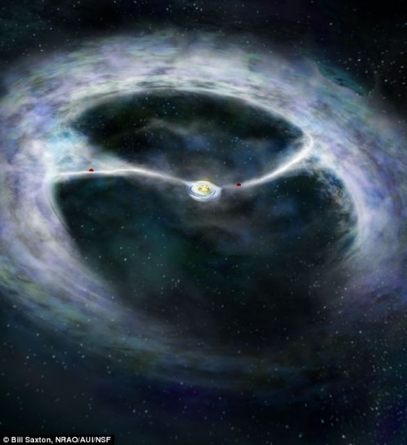 Το πανίσχυρο τηλεσκόπιο ALMA που είναι τοποθετημένο σε ύψος πέντε χιλιάδων μέτρων εντόπισε γιγάντιες δέσμες αερίου να ξεφεύγουν από τον δίσκο ύλης του άστρου και να «ρέουν» σταθερά στο κενό ανάμεσα στον δίσκο και το άστρο. Το τηλεσκόπιο κατέγραψε εικόνες από το φαινόμενο. Οι ερευνητές εκτιμούν ότι αυτή τη στιγμή γύρω από το άστρο σχηματίζονται δύο πλανήτες, πιθανότατα δύο γίγαντες αερίου σαν τον Δία.