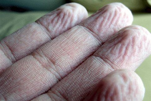 Πολλοί είχαν αναρωτηθεί, κανείς όμως δεν είχε εξηγήσει πειραματικά γιατί τα δάχτυλά μας ζαρώνουν όταν μουλιάσουν στο νερό. Βρετανική μελέτη δείχνει τώρα να επιβεβαιώνει μια παλιά θεωρία, σύμφωνα με την οποία το φαινόμενο μας βοηθά να πιάνουμε υγρά αντικείμενα.