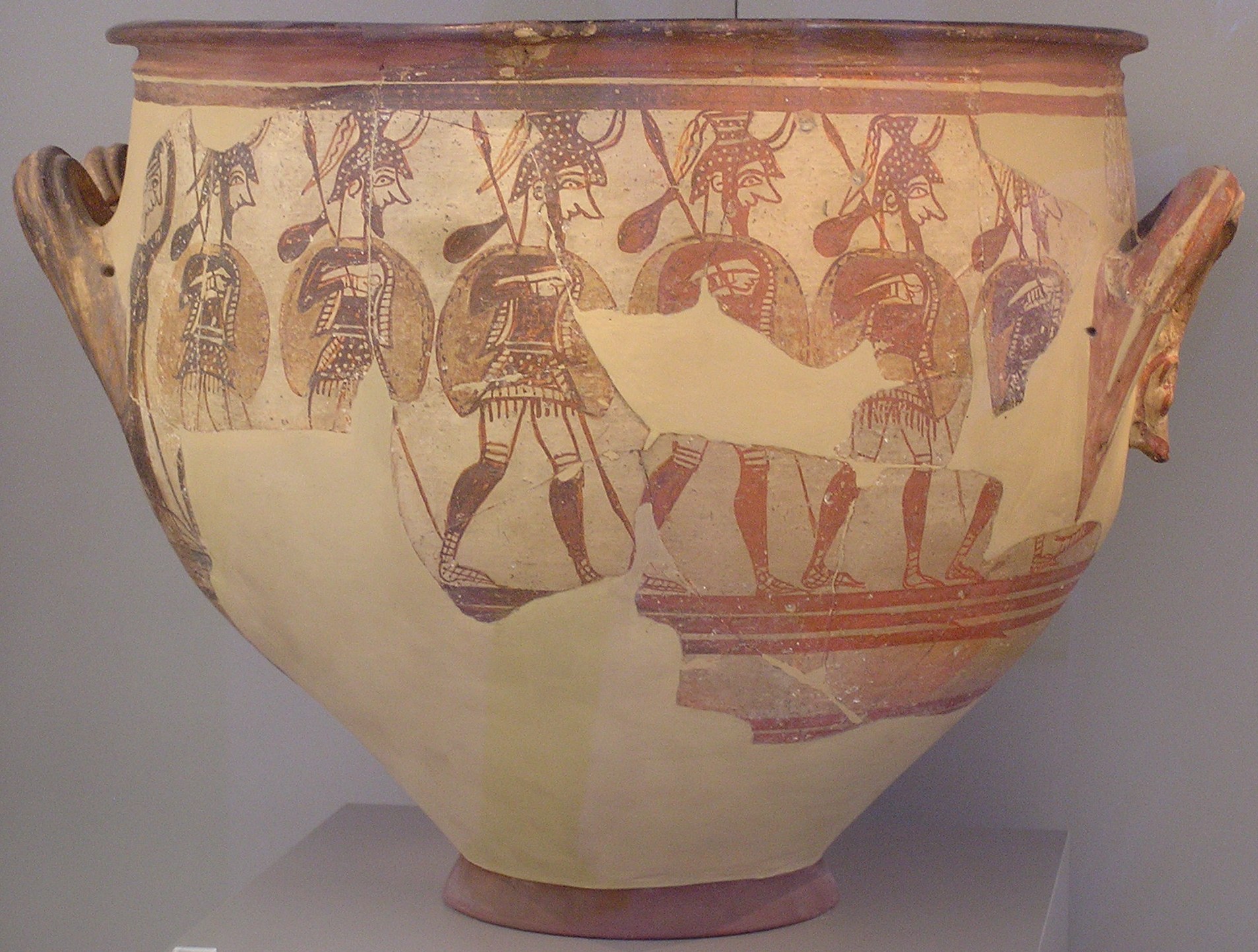 «Συγκρίνοντας τέχνεργα και αναπαραστάσεις από την Ανατολία, τις ακτές της Σύρο-Παλαιστίνης, τη Κύπρο και την Αίγυπτο γίνεται σαφής η ιδιαιτερότητα της Μυκηναϊκής τέχνης. Ο πλουραλισμός της και το ιδεολογικό υπόβαθρο της απεικόνισης πολεμικών σκηνών δεν έχουν παράλληλο στις γειτονικές περιοχές και, παρά τις όποιες ομοιότητες και παρόμοιες τεχνοτροπίες, η απεικόνιση πολεμιστών και κυνηγών δείχνει να έχει ένα ξεχωριστό, μάλλον Αιγαιακό χαρακτήρα».