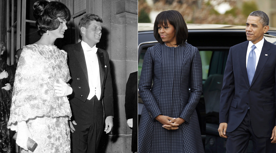 Ο Valentino ήταν ο designer του πολυσυζητημένου μίνι νυφικού της. Η Τζάκι ήταν απόλυτα γοητευτική στο πλευρό του Έλληνα μεγιστάνα Αριστοτέλη Ωνάση. Η κ. Ωνάση ξόδευε υπερβολικά ποσά για αγορές ρούχων και κοσμημάτων. Τα ρούχα της ήταν πάντα Haute Couture. Αντίθετα από αυτά της Μισέλ Ομπάμα. Η Μισέλ επιλέγει συνήθως κομμάτια pret-a-porter.