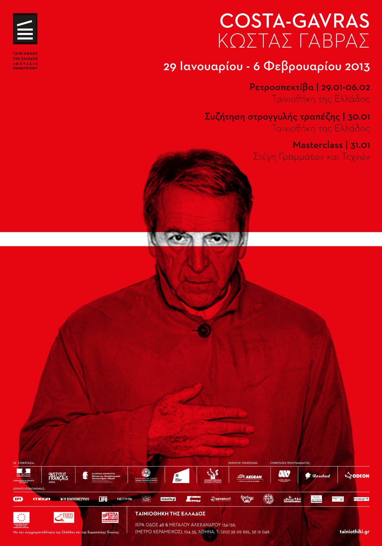 Μια ημέρα αργότερα, την Πέμπτη 31 Ιανουαρίου ο βραβευμένος με Οσκαρ σκηνοθέτης του «Ζ» και του «Αγνοούμενου» θα πραγματοποιήσει masterclass στη Μικρή Σκηνή της Στέγης Γραμμάτων & Τεχνών (στις 10.30 π.μ.). Τίτλος του «Η τέχνη του σκηνοθέτη».
