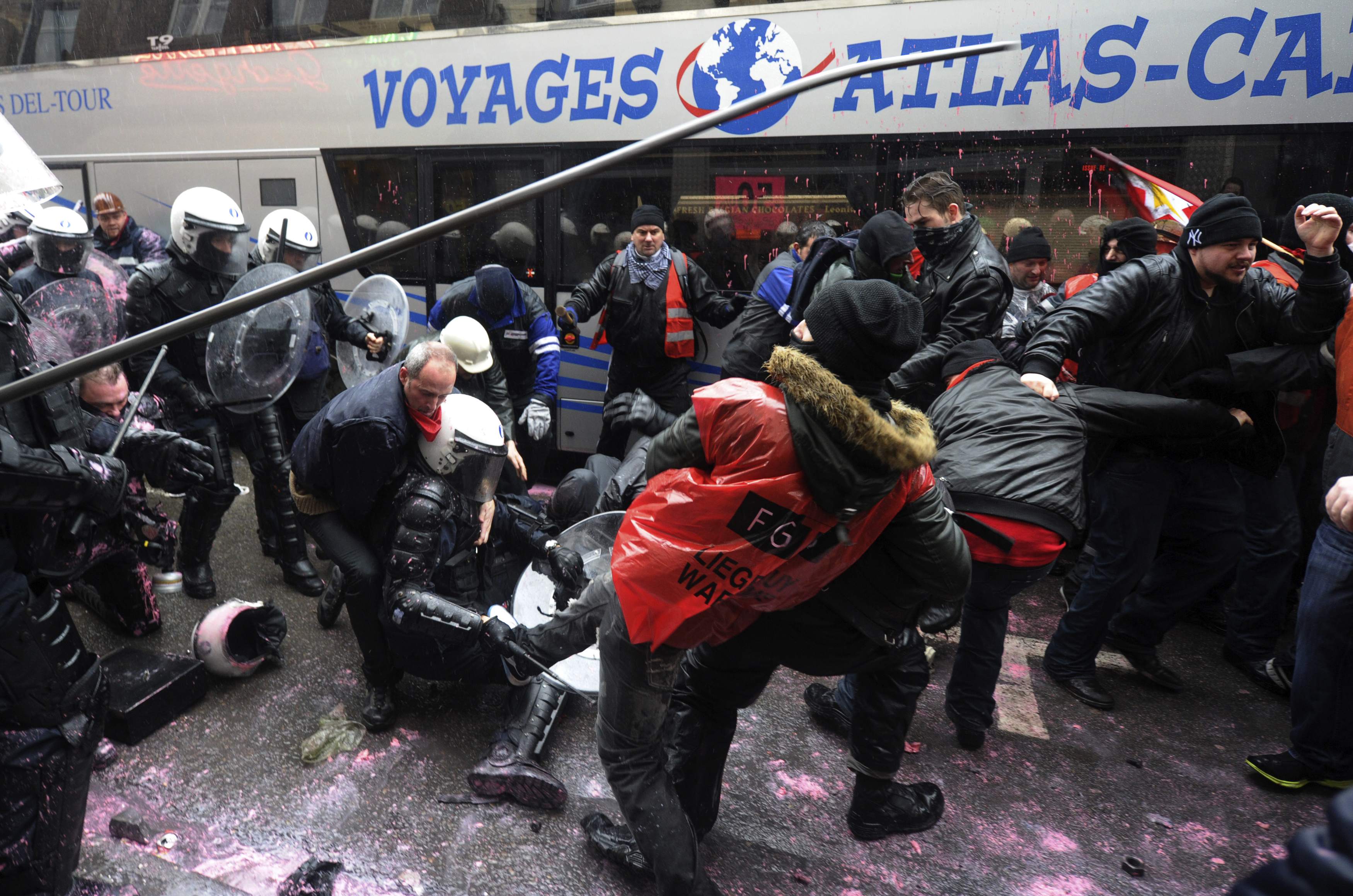Οι συγκρούσεις ξέσπασαν όταν οι διαδηλωτές επιχείρησαν να διεισδύσουν στην περίμετρο ασφαλείας που είχε δημιουργηθεί από την αστυνομία σε απόσταση περίπου 100 μέτρων από την έδρα της περιφερειακής κυβέρνησης, στο κέντρο της πρωτεύουσας της Βαλλονίας.