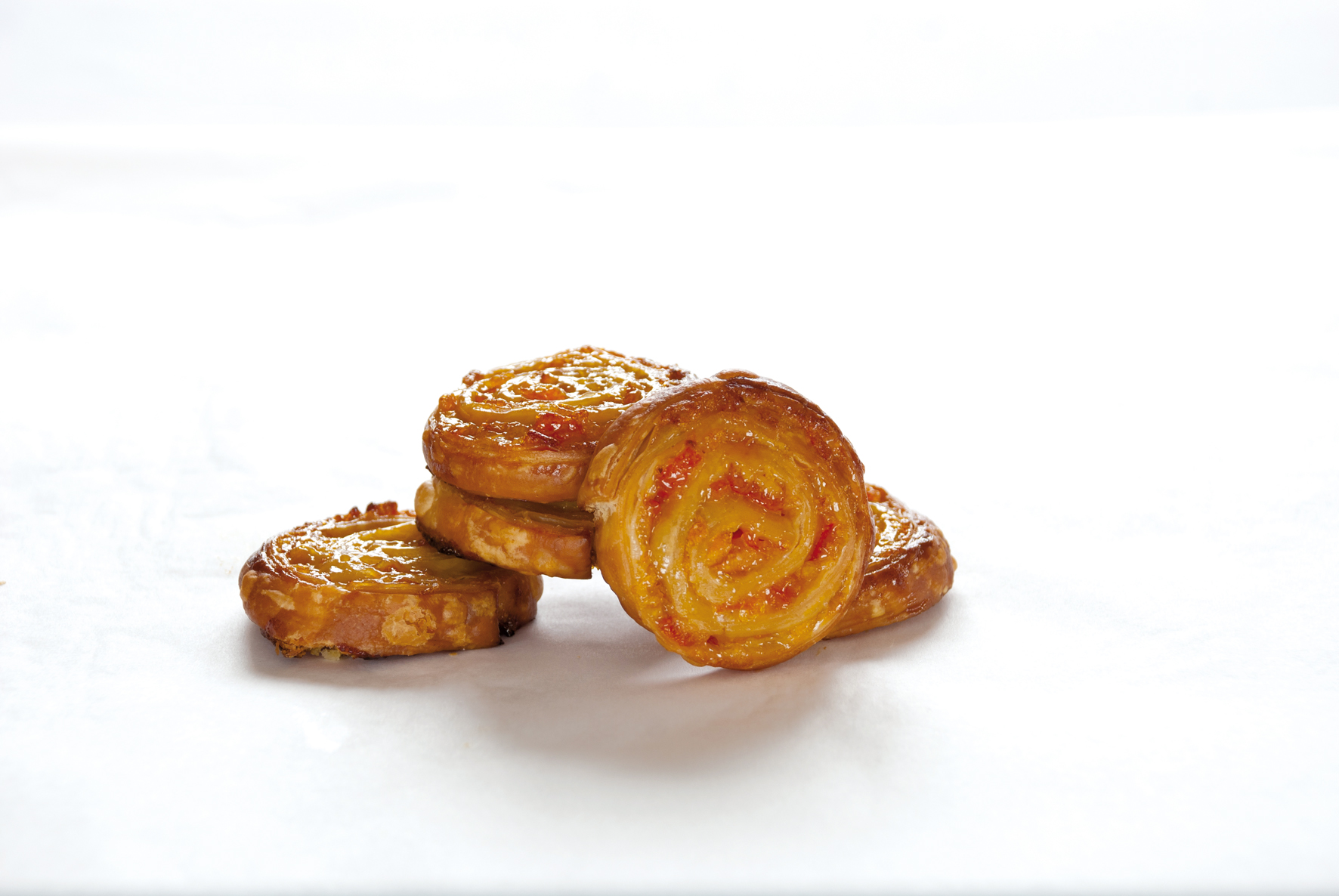 - Προθερμαίνουμε τον φούρνο στους 180 ο C. Αφαιρούμε τη μεμβράνη και κόβουμε σε λεπτές ροδέλες (περίπου 1 εκ.). Τοποθετούμε τις ροδέλες σε ταψί, που έχουμε στρώσει με αντικολλητικό χαρτί, αφήνοντας κάποια απόσταση μεταξύ τους, διότι καθώς θα φουσκώσουν μπορεί να κολλήσουν μεταξύ τους.
