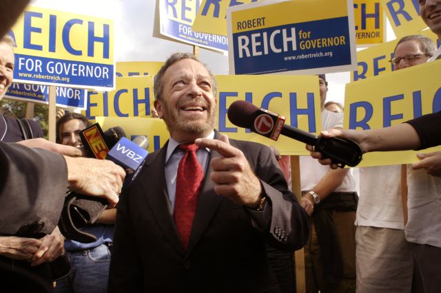 Στα 66 του χρόνια ο Ρόμπερτ Ράιχ θεωρείται από τους κορυφαίους εκλαϊκευτές της πολιτικής και οικονομικής σκέψης στην Αμερική. Υπουργός σε τρεις κυβερνήσεις (Φορντ, Κάρτερ και Κλίντον), διδάσκει σήμερα στο Πανεπιστήµιο της Καλιφόρνιας στο Μπέρκλεϊ. Αρθρογραφεί στους «New York Times» και συμμετείχε στις διαδηλώσεις των Αμερικανών Αγανακτισμένων, του κινήματος Occupy. Το περιοδικό «Time» τον έχει κατατάξει µεταξύ των 10 σπουδαιότερων υπουργών του 20ού αιώνα στις ΗΠΑ –ως υπουργός Εργασίας του Κλίντον πέρασε τον νόµο οικογενειακών και ιατρικών αδειών (Family and Medical Leave Act) και αύξησε τον κατώτατο µισθό. Εχει γράψει 14 βιβλία.