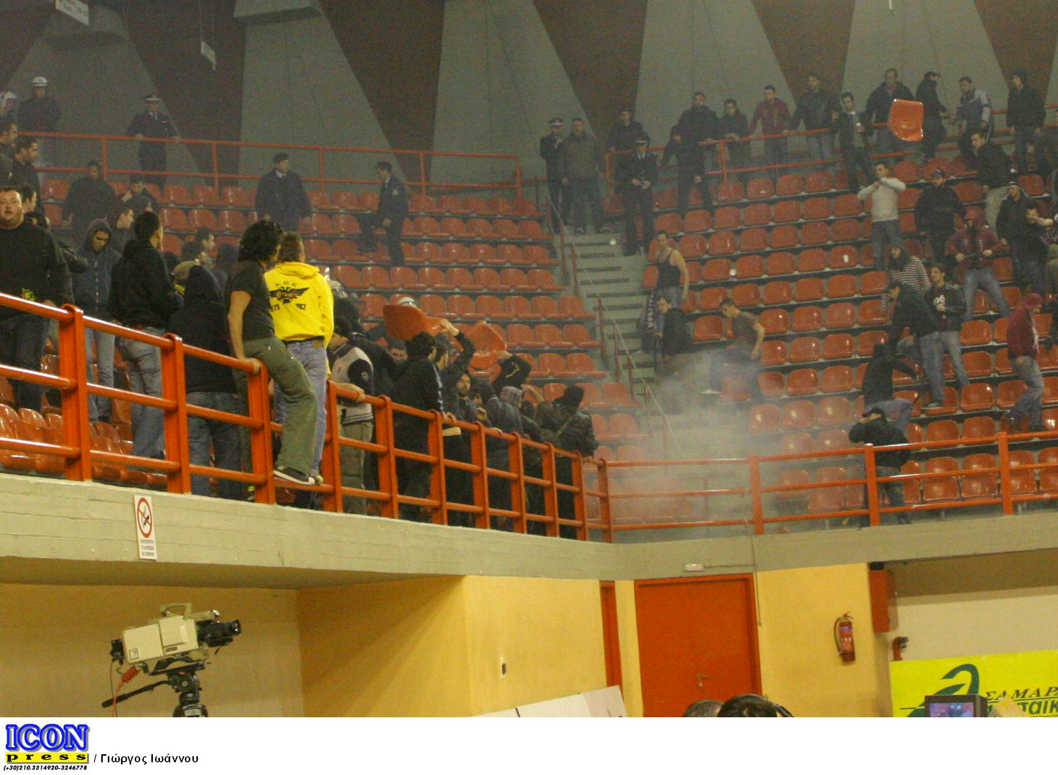 Επεισοδιακό, με δυο τραυματισμούς φιλάθλων – ο ένας από μαχαίρι – ήταν το το τοπικό ντέρμπι μπάσκετ μεταξύ Πανελληνίου και Σπόρτιγκ.