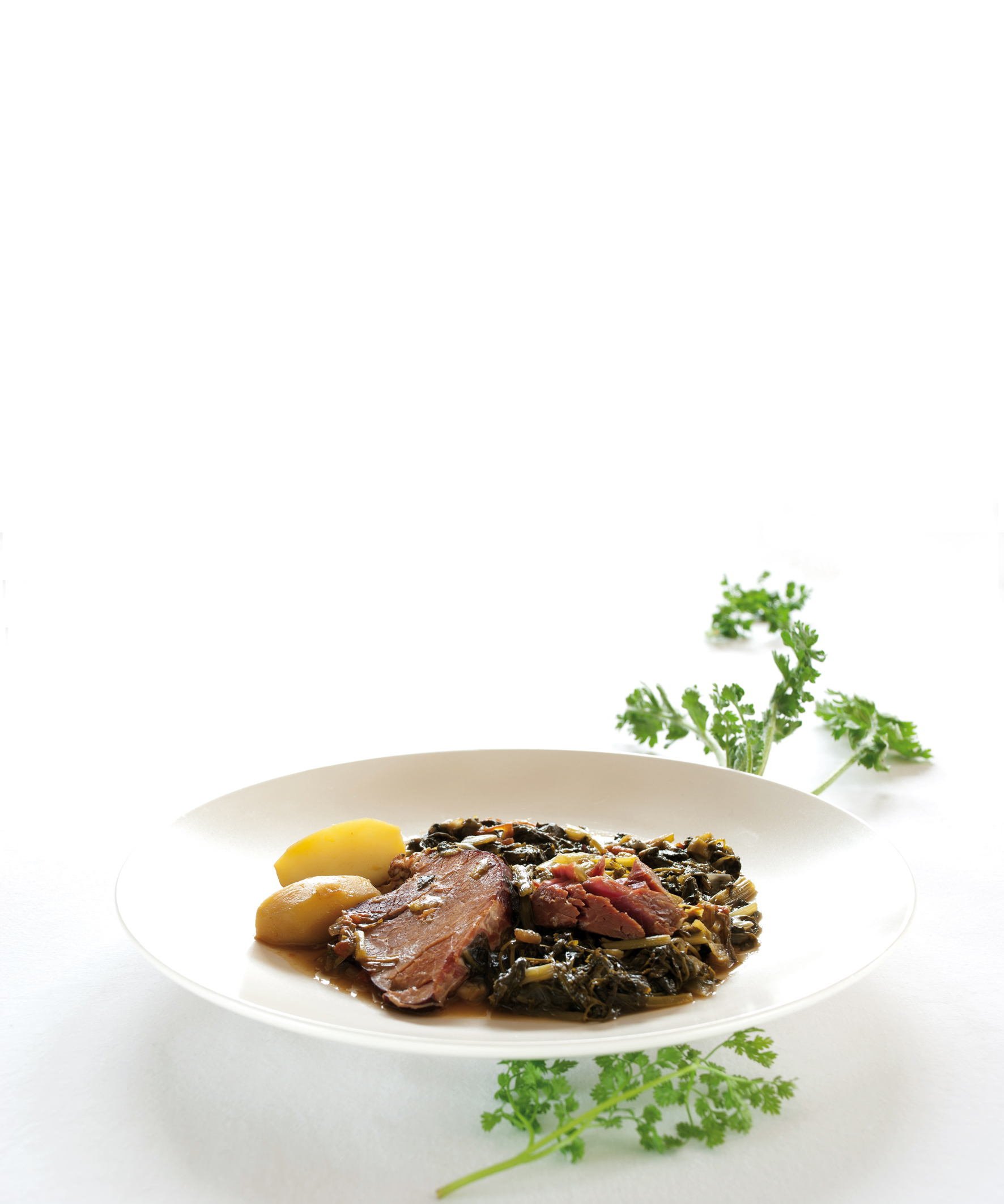 Το σύγλινο θα χαρίσει τη γεύση του καπνιστού στα χόρτα και εκείνα θα ανταποδώσουν µε τη φρεσκάδα τους.