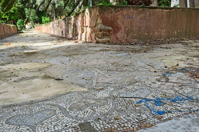 Εδώ και μία διετία, επισήμως, βρίσκεται σε αναμονή η επανατοποθέτηση των τμημάτων του υστερορρωμαϊκού μωσαϊκού στη θέση τους –πιθανώς και η κατασκευή προστατευτικού στεγάστρου -, στην πραγματικότητα όμως από το 2006, όταν αφαιρέθηκε. Η τελευταία διετία αφορά την εκπόνηση της μελέτης για την αναβάθμιση του Εθνικού Κήπου στο σύνολό του. Εκτοτε όμως έχει γίνει μπαλάκι μεταξύ Περιφέρειας Αττικής, Δήμου Αθηναίων, υπουργείου Πολιτισμού και Δασαρχείου. Κατά τη συνήθη πρακτική, ο ένας μεταθέτει τις ευθύνες στον άλλον, εν τω μεταξύ κονδύλια δεν υπάρχουν και τα σχέδια έχουν μείνει στα χαρτιά.