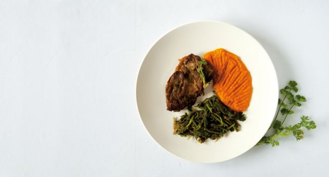 Αφήνω το κρέας, σε σκεπασµένη κατσαρόλα, να σιγοβράσει, µέχρι να µαλακώσει, προσέχοντας να υπάρχει ζουµί και συµπληρώνοντας µε νεράκι αν χρειαστεί. Τελειώνοντας, αλατοπιπερώνω, βγάζω τα καρότα από την κατσαρόλα, τα βάζω στο µπλέντερ µε λίγο ζουµί από το φαγητό και φτιάχνω έναν πουρέ. Μπορώ να τον σερβίρω χωριστά ή να τον ανακατέψω µέσα στην κατσαρόλα κουνώντας τη δεξιά-αριστερά, για να δέσει η σάλτσα. Προαιρετικά, ρίχνω και τον χυµό από 1 λεµόνι.